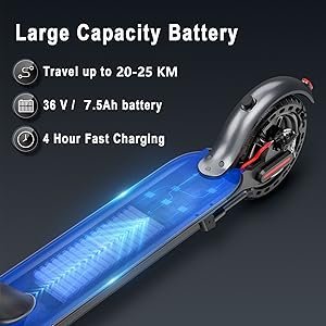 ![]() Langstrecken-Pendler-RollerDer Elektroroller Max Reichweite von 20-25 km unter optimalen Bedingungen, Geschwindigkeit bis zu 25 km/h, vermeiden Sie die Belästigung durch den dichten Verkehr, keine Angst vor dem Kilometerstand, einmal eine einzige Ladung für ein paar Tage pendeln.ganz, geeignet Elektroroller für Erwachsene. ![]() Leistungsstarker MotorDer Elektroscooter 350W Brushless Motor 36V 7.5Ah Batterie mit hoher Energiedichte, klettert 15° bergauf und belastet max 120 kg, ideal für leichte Reisen, Pendeln, Verabredungen, auf dem Weg zur Schule oder Bibliothek. ![]() Duales BremssystemDer e roller verfügt über eine Scheibenbremse und ein regeneratives Antiblockiersystem EBS. Es kann Ihre Sicherheit gewährleisten. Der e scooter hat eine eingebaute Klingel. Hat sowohl Kopf- als auch Rücklichter, von denen letzteres schnell blinkt, wenn Sie auf die Bremse treten. Sicheres Fahren bei Nacht mit dem LED-Frontlicht und dem roten Rücklicht.